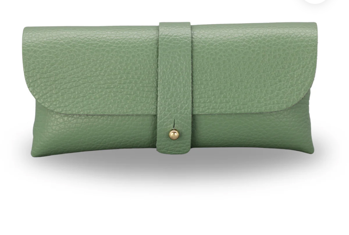 Frisch & stilvoll – das mintgrüne Brillenetui aus weichem Lederimitat mit goldenem Akzent ist der perfekte Mix aus Funktionalität und modernem Design.